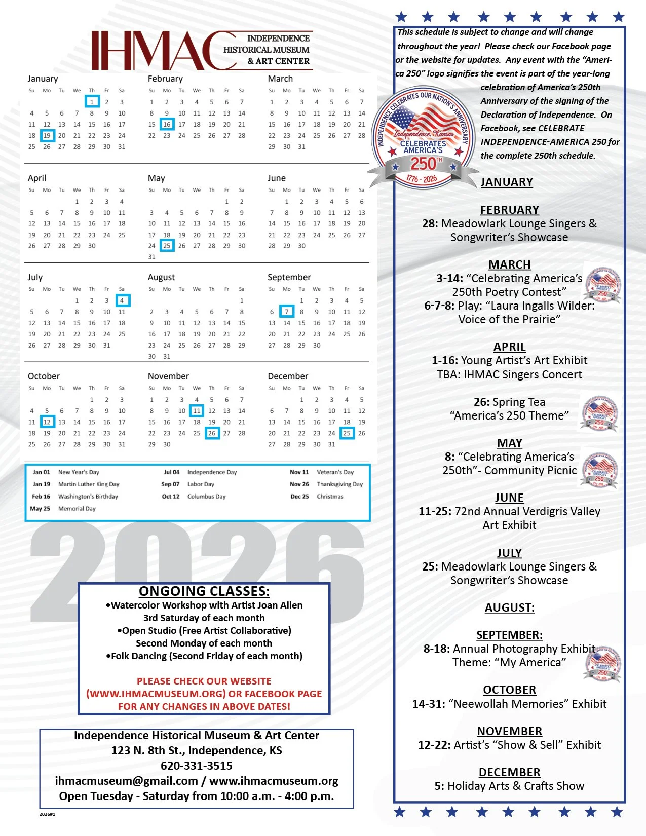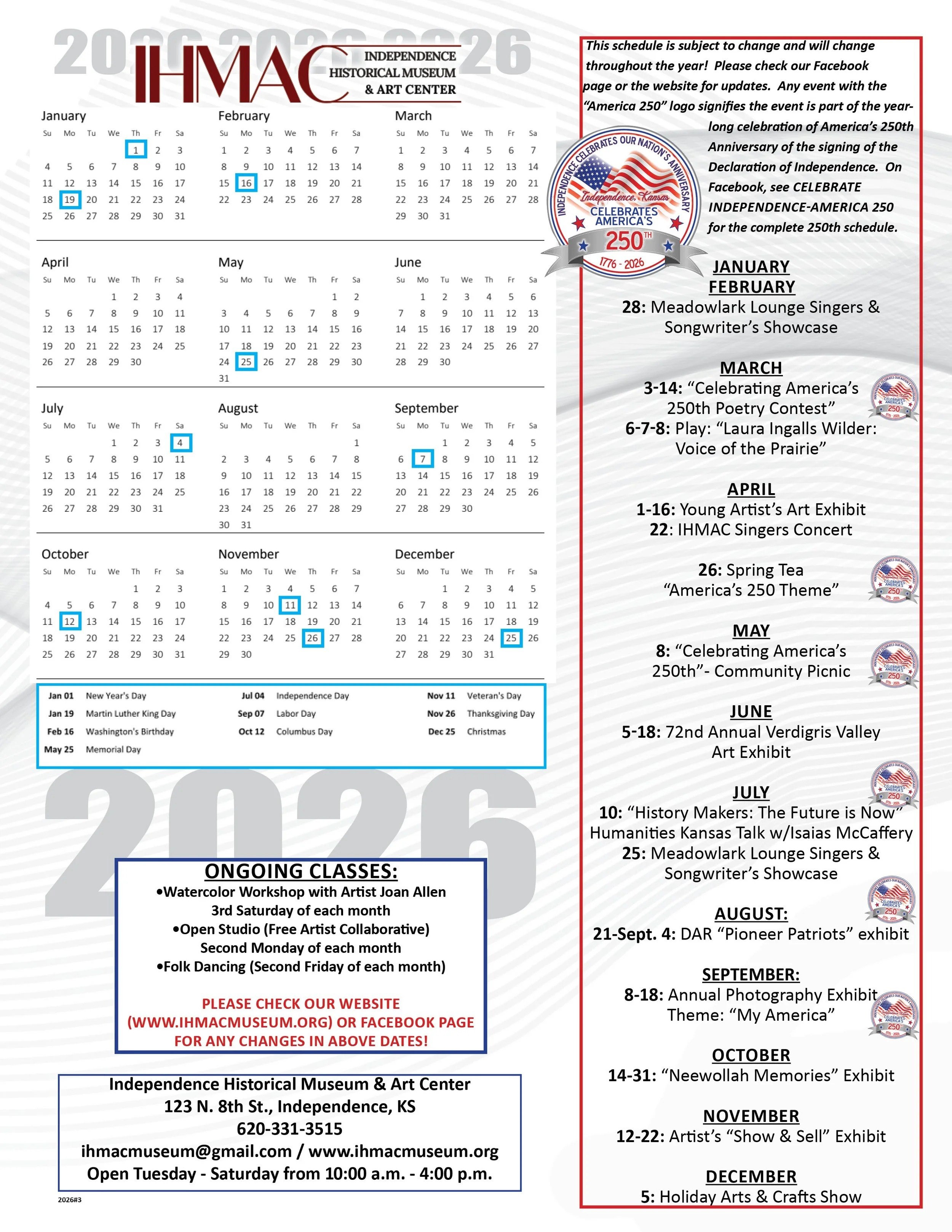 IHMAC MUSEUM Hours: Tuesday-Saturday, 10:00 AM to 4:00 PM
