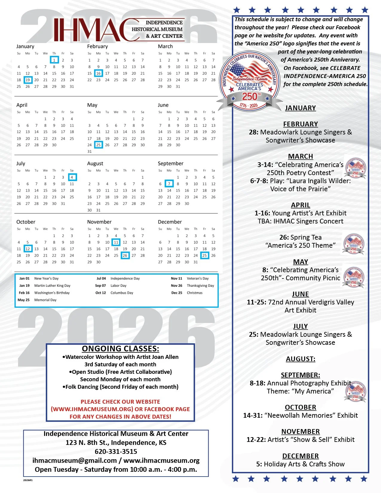 2026 Calendar of Events